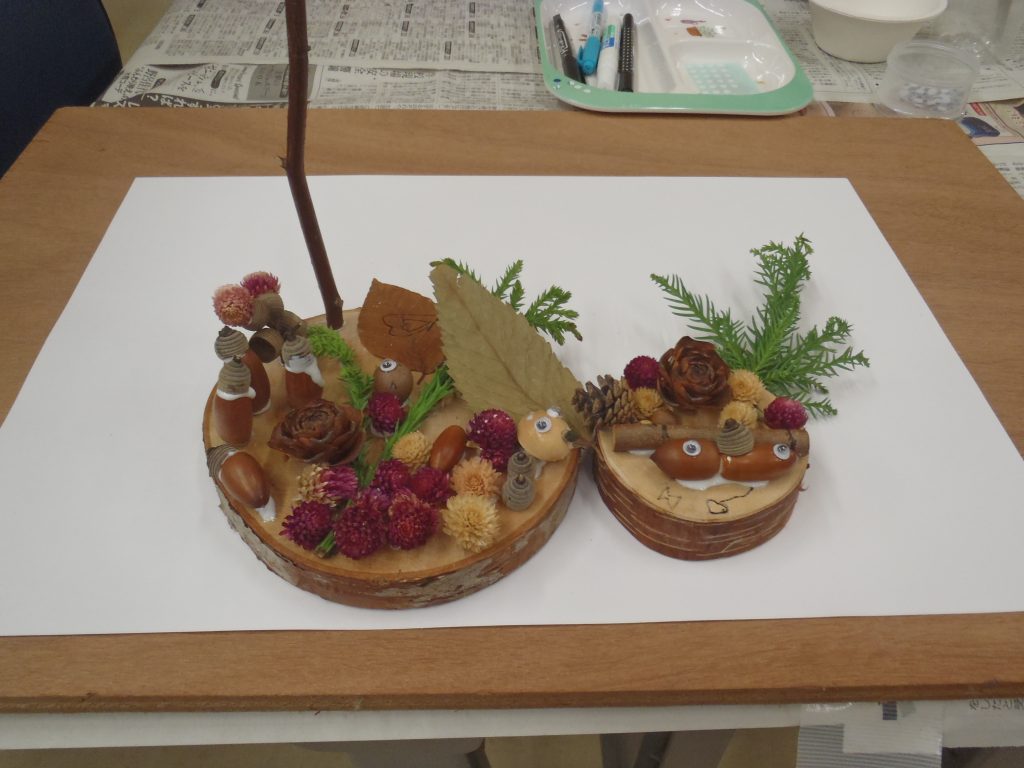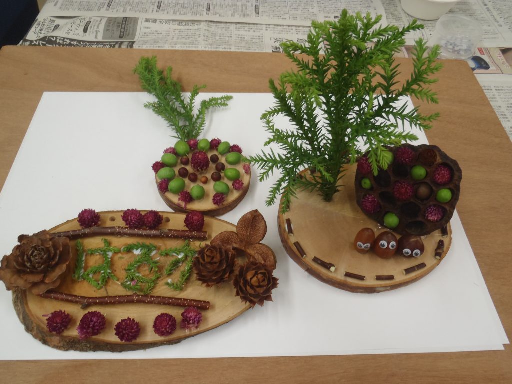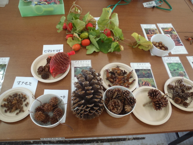 「森の工作」は当会でも人気メニューであり、これから数多くの出番があります。また、9月29日から10月6日まで、みかも山公園緑の相談所展示ホールで「不思議・美味しい・遊べる木の実展」を予定しています。かなり広い展示スペースであり、身の回りにある素材集めとその魅力を伝える準備を、みんなで進めていきましょう。(野口光三)