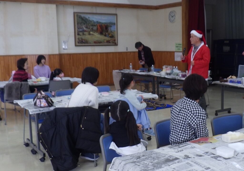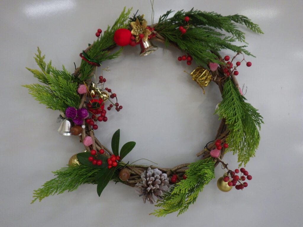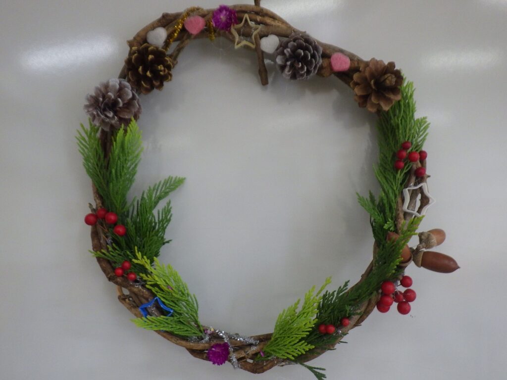 当初の参加者は全19名、リース作成14名でしたが、先週より学校内でインフルエンザが猛威を奮っているそうで、当日は上記にあるように約半分の参加者となりました。少々残念ではありましたが、この時期では致し方ないと思います。逆に少人数のおかげで、スタッフの工作のサポート作業の負荷も低く(むしろ手持ち無沙汰)、お子さん達や保護者の方と、工作のアイデアや助言などお話しすることもでき、ゆったりとした工作の時間となった気がしています。各お子さん達と保護者の方々での共同作業のような工作で、和やかに楽しんでいる様子が伺えました。それぞれのリース作品はユニークでとても可愛らしく、装飾も華美ではなく素材をうまく使って施されていました。毎度お子さん達の満足げな笑顔や、各作品にはほのぼのしてしまいますね。詳細は作品写真をご覧ください。(吉田 秀希)