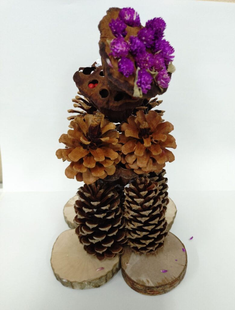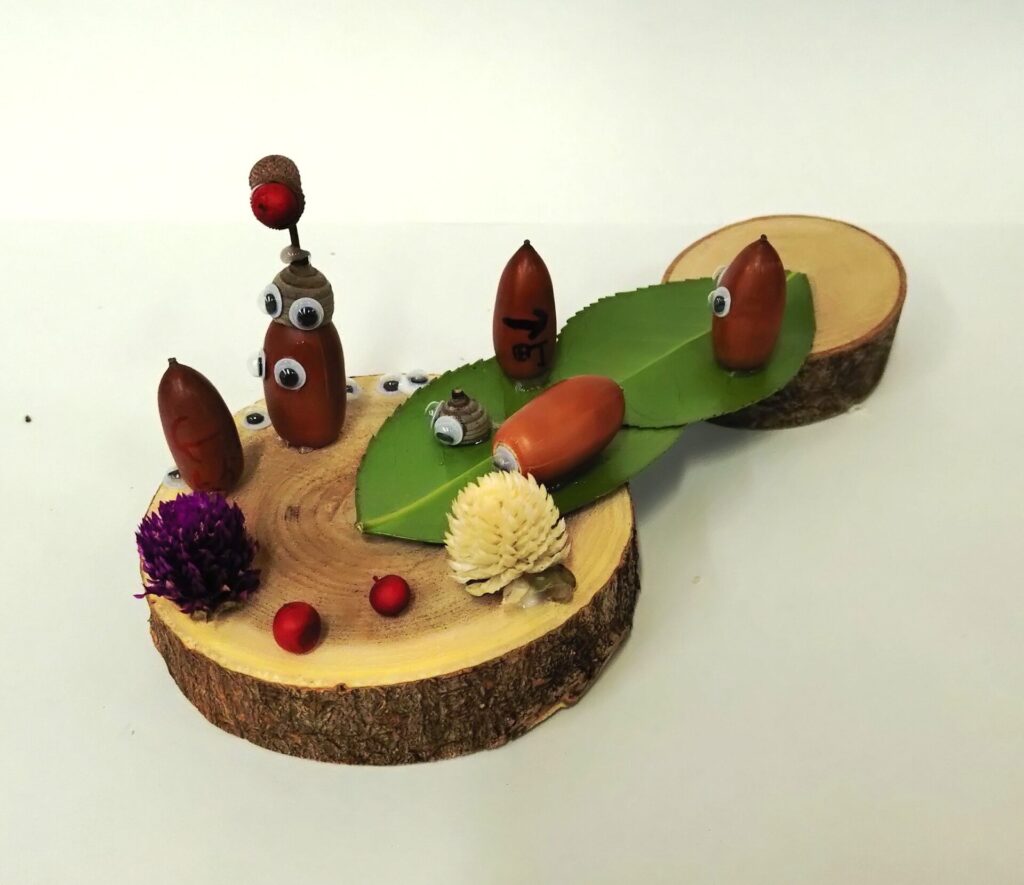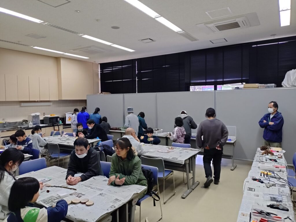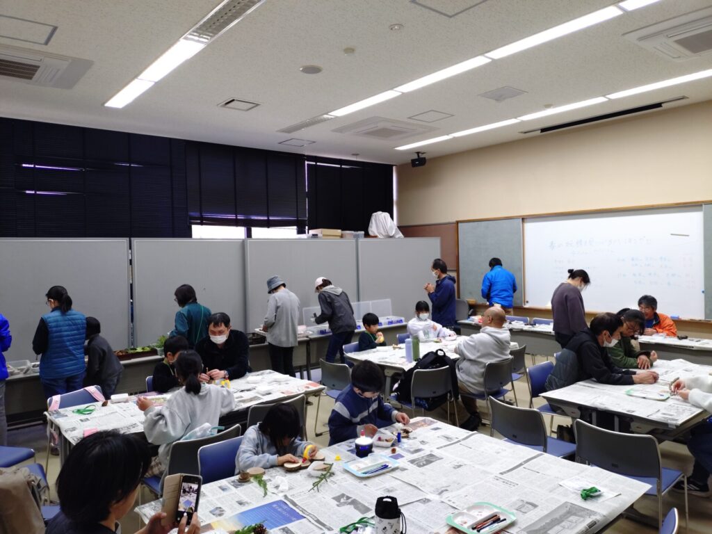 出題する問題は、良く観察してほしいとの思いから、咲いている花の花びらの枚数や色などを出題したいところですが、当日に咲いているものの予測が難しいところです。今回、下見に行く時間が取れず、昨年と同様の出題が多かったと反省しています。昨年からの工夫は、虫メガネを置いたり、「森の宝物」コーナー(森の工作で使用する多種多様な木の実)を用意したりしましたが、手を抜いた分だけ見返り(参加者数)が少ない結果となり、大いに反省しています。テント1張りと「県内最大の都市公園」を自由に使える好条件の中、どんな「アウトドア体験」を提供できるのか、「みかも山フェスタ2027春」に向けてみんなで考えていきたいと考えています。(野口)