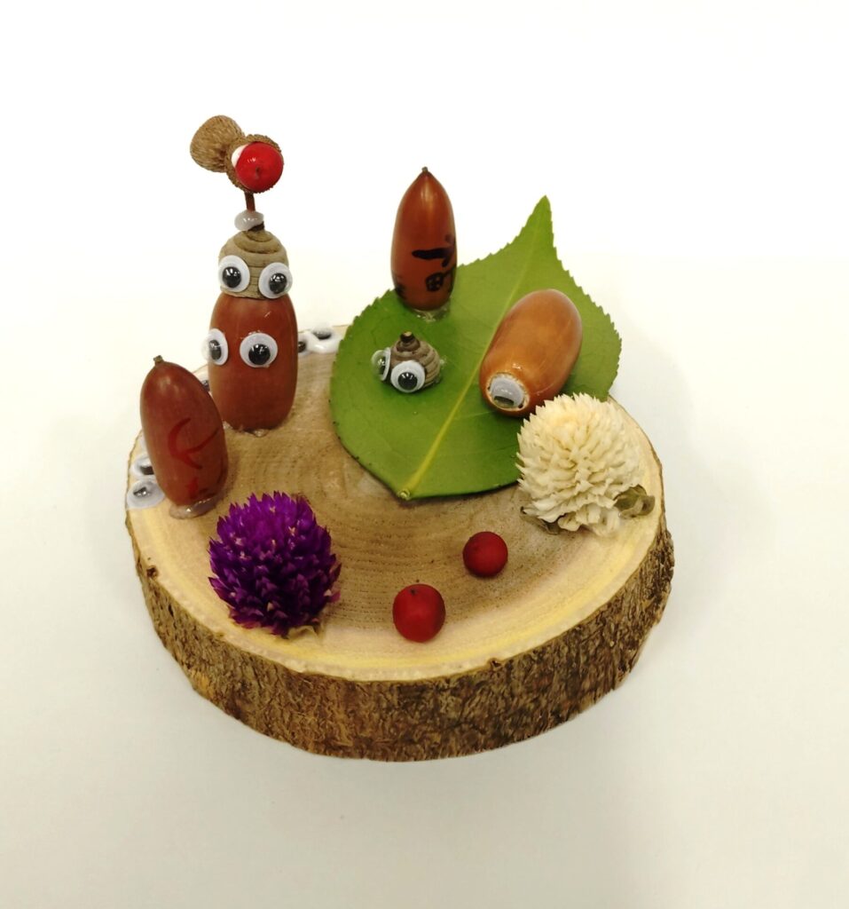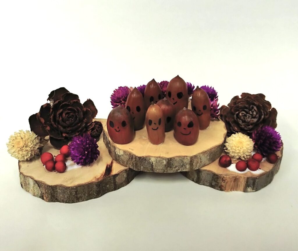 ⑩クヌギのどんぐりの殻斗(帽子)がいっぱい落ちています。どんぐりはどこに行ったんだろう?【答えは1つじゃない。】