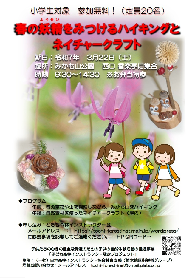 「みかも山フェスタ2025春」は、3月29日(土)、30日(日)の2日間のイベントで、当会は30日のみ「森のクイズラリー」での参加です。1日目の29日が雨天で中止となり、2日目の30日は天気が回復したため、駐車場があっという間に満車になるほどの人気ぶりで、当会の参加者も100名限定のところ、116名(子ども50名、大人66名)を受け付け、その約8割が親子での参加でした。