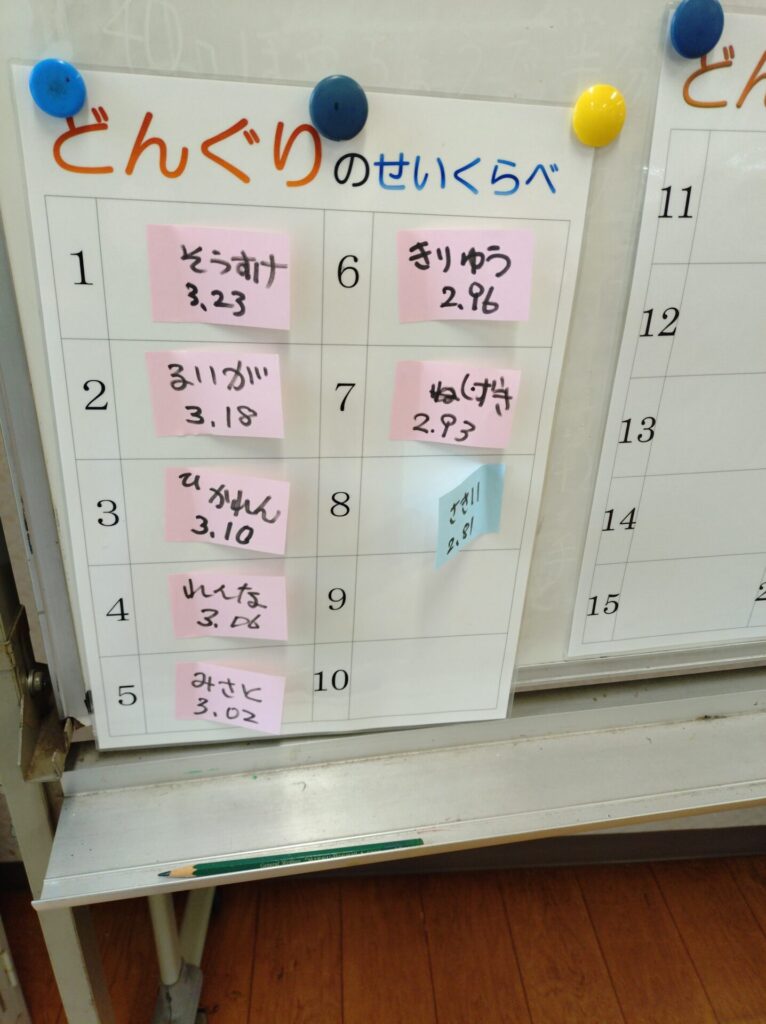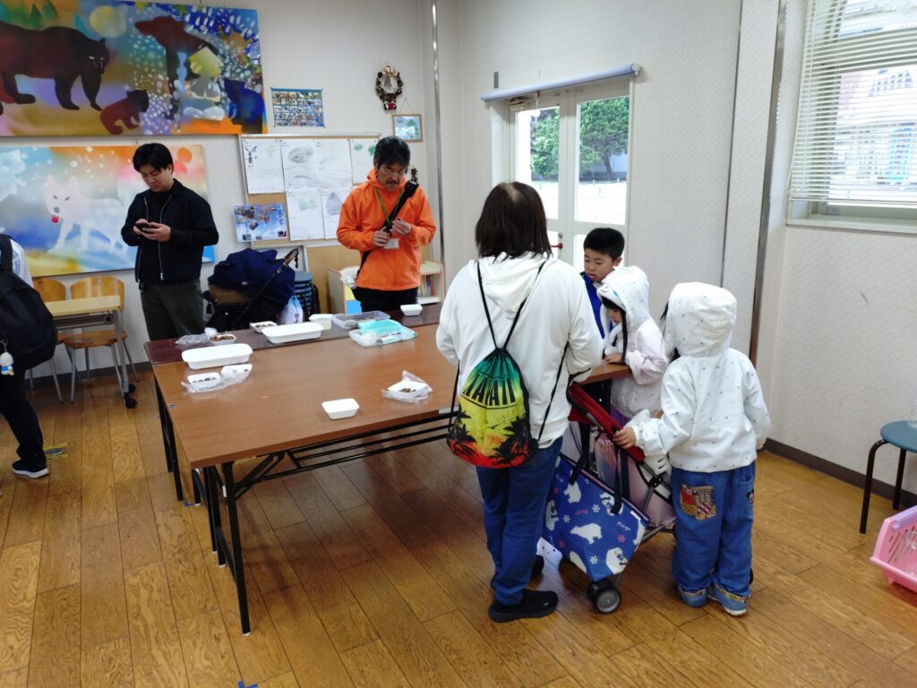 正解数に応じて、素敵なアイテム(様々なクリアファイル)や、篠笛(江田さん手作り)、松ぼっくり(10種)、どんぐり(2種)、わたの種などをプレゼントしました。上記のとおり、結構難問もある中、8割近い正解率でしたが、全問正解者はおりませんでした。親子で協力しながら、真剣に問題に取り組む姿が印象的でした。詳細は、写真にメモも入れていますので、そちらをご覧ください。(野口)