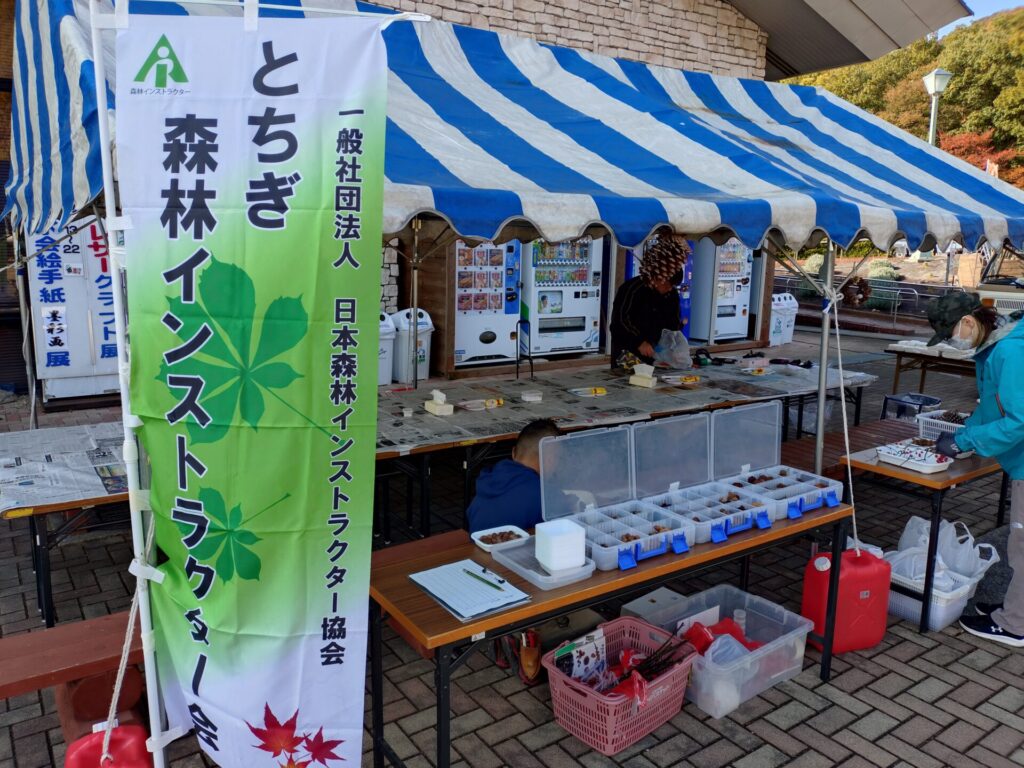 みかも山公園主催の「みかも山フェスタ」が開催され、当会では「木の実の工作&草木クイズ」を出展しました。数日前に近くの山でクマ目撃情報があったため、昨日のフェスタは閑古鳥が鳴いていたようですが、本日はお天気もよく、クイズには95名、工作には107名の参加がありました。