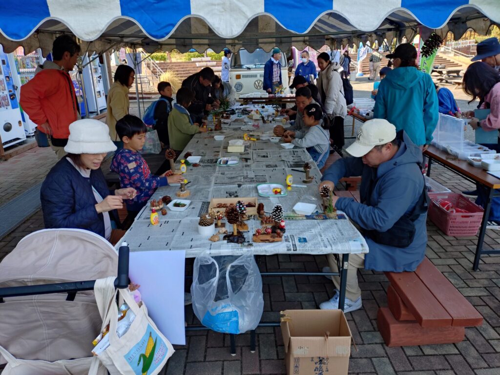 木の実の工作では、参加者の方だけでなく、通りかかった方からも「いろんな種類があるんですね~」「どんぐりもいろんな大きさがある!」「これは何の実ですか??」などなど色々な種類のどんぐりや木の実、草の実に興味を示してくださいました。